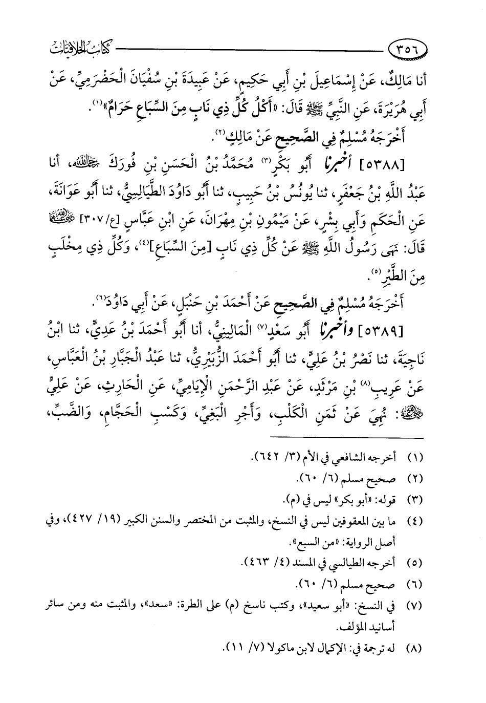 [5388] أخبرنا أَبُو بَكْرٍ (¬3) مُحَمَّدُ بْنُ الْحَسَنِ بْنِ فُورَكَ - رحمه الله -، أنا عَبْدُ اللَّهِ بْنُ جَعْفَرٍ، ثنا يُونُسُ بْنُ حَبِيبٍ، ثنا أَبُو دَاوُدَ الطَّيَالِسِيُّ، ثنا أَبُو عَوَانَةَ، عَنِ الْحَكَمِ وَأَبِي بِشْرٍ، عَنْ مَيْمُونِ بْنِ مِهْرَانَ، عَنِ ابْنِ عَبَّاسٍ - رضي الله عنهما - قَالَ: نَهَى رَسُولُ اللَّهِ - صلى الله عليه وسلم - عَنْ كُلِّ ذِي نَابٍ [مِنَ السِّبَاعِ] (¬4)، وَكُلِّ ذِي مِخْلَبٍ مِنَ الطَّيْرِ (¬5).