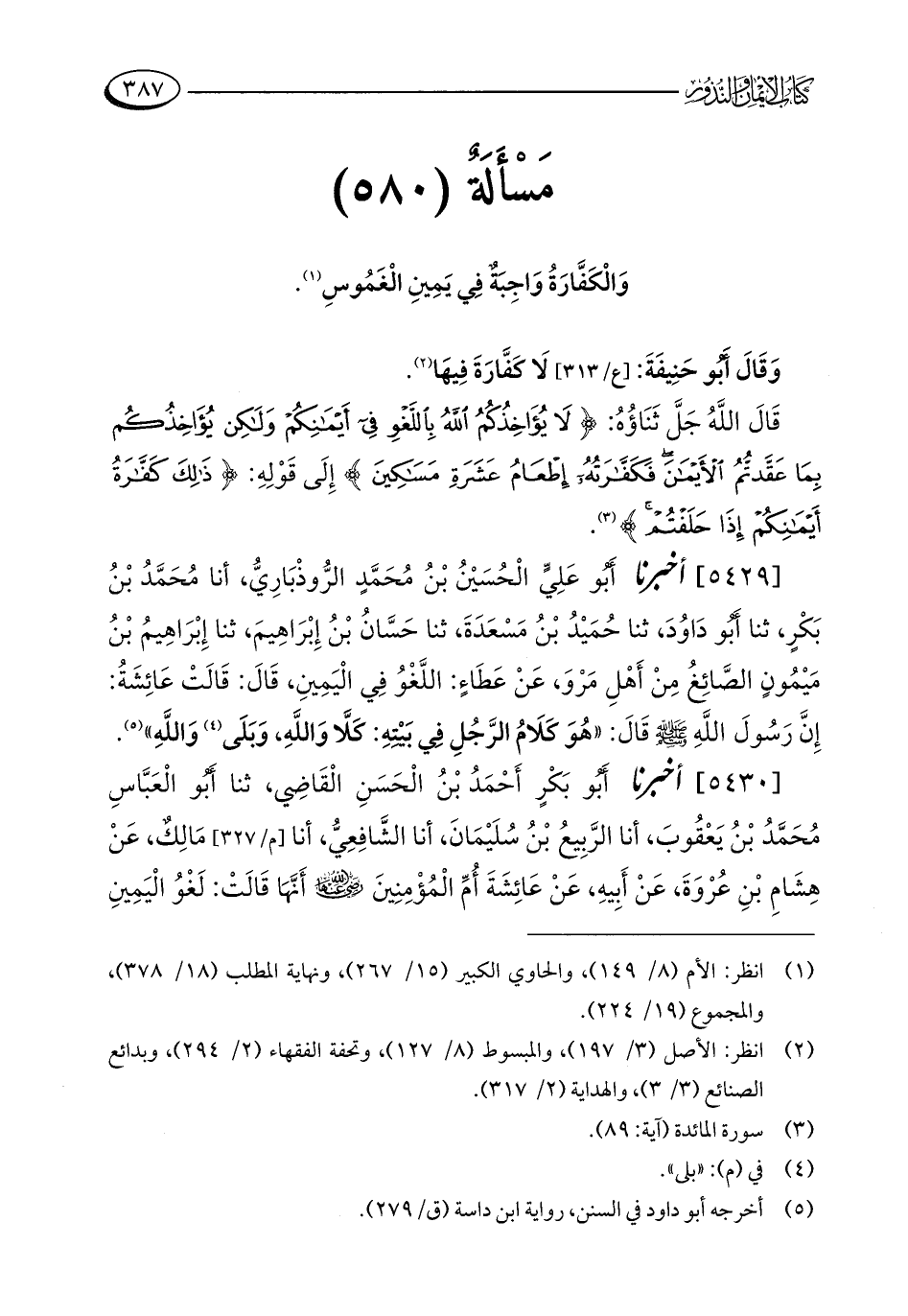 قَالَ اللَّهُ جَلَّ ثَنَاؤُهُ: {لَا يُؤَاخِذُكُمُ اللَّهُ بِاللَّغْوِ فِي أَيْمَانِكُمْ وَلَكِنْ يُؤَاخِذُكُمْ بِمَا عَقَّدْتُمُ الْأَيْمَانَ فَكَفَّارَتُهُ إِطْعَامُ عَشَرَةِ مَسَاكِينَ} إِلَى قَوْلِهِ: {ذَلِكَ كَفَّارَةُ أَيْمَانِكُمْ إِذَا حَلَفْتُمْ} (¬3).