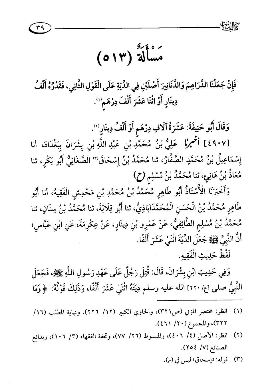 (¬2) انظر: الأصل (4/ 406)، والمبسوط (26/ 77)، وتحفة الفقهاء (3/ 106)، وبدائع الصنائع (7/ 254).