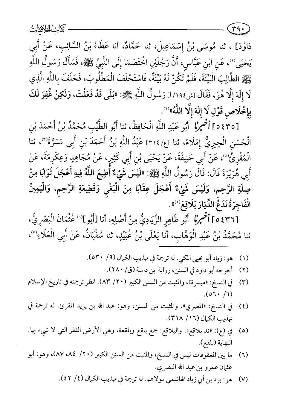 [5436] أخبرنا أَبُو طَاهِرٍ الزِّيَادِيُّ مِنْ أَصْلِهِ، أنا [أَبُو] (¬6) عُثْمَانَ الْبَصْرِيُّ، ثنا مُحَمَّدُ بْنُ عَبْدِ الْوَهَّابِ، أنا يَعْلَى بْنُ عُبَيْدٍ، ثنا سُفْيَانُ، عَنْ أَبِي الْعَلَاءِ (¬7)،