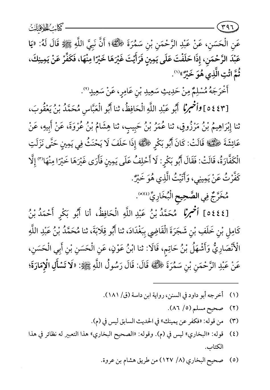 عَنِ الْحَسَنِ، عَنْ عَبْدِ الرَّحْمَنِ بْنِ سَمُرَةَ - رضي الله عنه -؛ أَنَّ نَبِيَّ اللَّهِ - صلى الله عليه وسلم - قَالَ لَهُ: "يَا عَبْدَ الرَّحْمَنِ، إِذَا حَلَفْتَ عَلَى يَمِينٍ فَرَأَيْتَ غَيْرَهَا خَيْرًا مِنْهَا، فَكَفِّرْ عَنْ يَمِينِكَ، ثُمَّ ائْتِ الَّذِي هُوَ خَيْرٌ" (¬1).