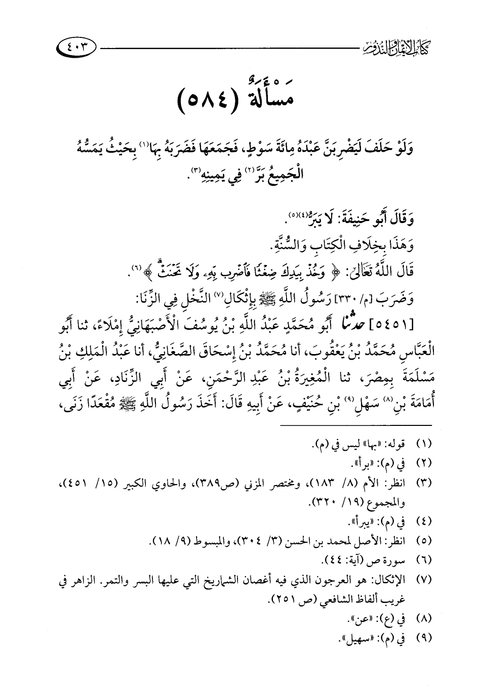 (¬5) انظر: الأصل لمحمد بن الحسن (3/ 304)، والمبسوط (9/ 18).