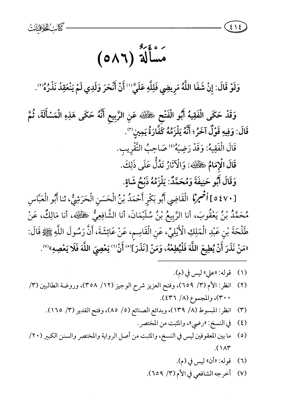كتاب الخلافيات بين الإمامين الشافعي وأبي حنيفة وأصحابه ت النحال (اسم الجزء: 7)