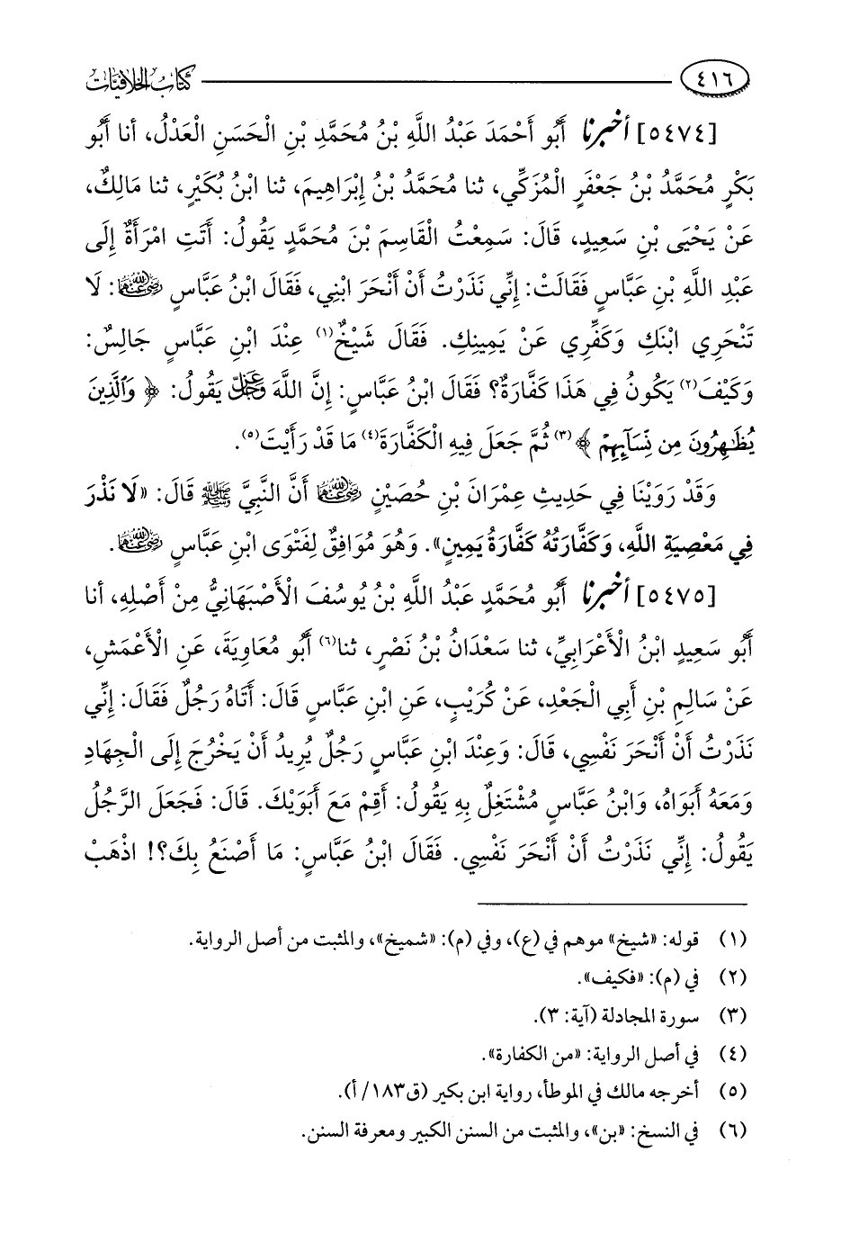 [5475] أخبرنا أَبُو مُحَمَّدٍ عَبْدُ اللَّهِ بْنُ يُوسُفَ الْأَصْبَهَانِيُّ مِنْ أَصْلِهِ، أنا أَبُو سَعِيدٍ ابْنُ الْأَعْرَابِيِّ، ثنا سعْدَانُ بْنُ نَصْرٍ، ثنا (¬6) أَبُو مُعَاوِيَةَ، عَن الْأَعْمَشِ، عَنْ سَالِمِ بْنِ أَبِي الْجَعْدِ، عَنْ كُرَيْبٍ، عَنِ ابنِ عَبَّاسٍ قَالَ: أَتَاهُ رَجُلٌ فَقَالَ: إِنِّي نَذَرْتُ أَنْ أَنْحَرَ نَفْسِي، قَالَ: وَعِنْدَ ابْنِ عَبَّاسٍ رَجُلٌ يُرِيدُ أَنْ يَخْرُجَ إِلَى الْجِهَادِ وَمَعَهُ أَبَوَاهُ، وَابْنُ عَبَّاسٍ مُشْتَغِلٌ بِهِ يَقُولُ: أَقِمْ مَعَ أَبَوَيْكَ. قَالَ: فَجَعَلَ الرَّجُلُ يَقُولُ: إِنِّي نَذَرْتُ أَنْ أَنْحَرَ نَفْسِي. فَقَالَ ابْنُ عَبَّاسٍ: مَا أَصْنَعُ بِكَ؟ ! اذْهَبْ