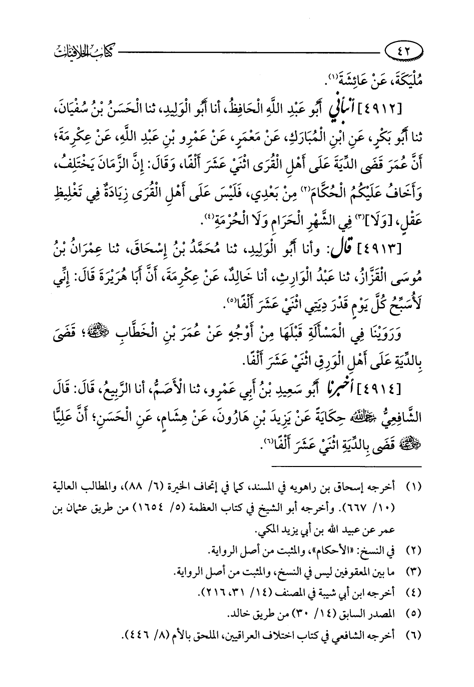 [4914] أخبرنا أَبُو سَعِيدِ بْنُ أَبِي عَمْرٍو، ثنا الْأَصَمُّ، أنا الرَّبِيعُ، قَالَ: قَالَ الشَّافِعِيُّ - رحمه الله - حِكَايَةً عَنْ يَزِيدَ بْنِ هَارُونَ، عَنْ هِشَامٍ، عَنِ الْحَسَنِ؛ أَنَّ عَلِيًّا - رضي الله عنه - قَضَى بِالدِّيَةِ اثْنَيْ عَشَرَ أَلْفًا (¬6).