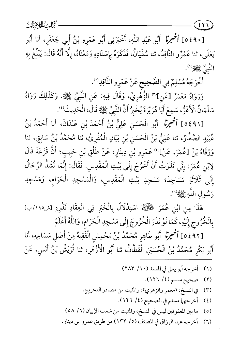[5491] أخبرنا أَبُو الْحَسَنِ عَلِيُّ بْنُ أَحْمَدَ بْنِ عَبْدَانَ، أنا أَحْمَدُ بْنُ عُبَيْدٍ الصَّفَّارُ، ثنا عَلِيُّ بْنُ الْحَسَنِ بْنِ بَيَانٍ الْمُقْرِئُ، ثنا مُحَمَّدُ بْنُ سَابِقٍ، ثنا وَرْقَاءُ بْنُ [عُمَرَ، عَنْ] (¬5) عَمْرِو بْنِ دِينَارٍ، عَنْ طَلْقِ بْنِ حَبِيبٍ؛ أَنَّ قَزَعَةَ قَالَ لِابْنِ عُمَرَ: إِنِّي نَذَرْتُ أَنْ أَخْرُجَ إِلَى بَيْتِ الْمَقْدِسِ. فَقَالَ: إِنَّمَا تُشَدُّ الرِّحَالُ إِلَى ثَلَاثَةِ مَسَاجِدَ؛ مَسْجِدِ بَيْتِ الْمَقْدِسِ، وَالْمَسْجِدِ الْحَرَامِ، وَمَسْجِدِ رَسُولِ اللَّهِ - صلى الله عليه وسلم - (¬6).