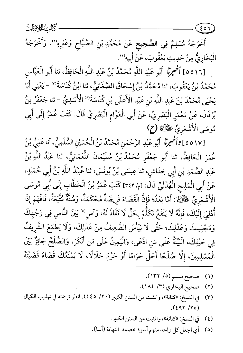 [5516] أخبرنا أَبُو عَبْدِ اللَّهِ مُحَمَّدُ بْنُ عَبْدِ اللَّهِ الْحَافِظُ، ثنا أَبُو الْعَبَّاسِ مُحَمَّدُ بْنُ يَعْقُوبَ، ثنا مُحَمَّدُ بْنُ إِسْحَاقَ الصَّغَانِيُّ، ثنا ابْنُ كُنَاسَةَ (¬3) - يَعْنِي أَبَا يَحْيَى مُحَمَّدَ بْنَ عَبْدِ اللَّهِ بْنِ عَبْدِ الْأَعْلَى بْنِ كُنَاسَةَ (¬4) الْأَسَدِيَّ - ثنا جَعْفَرُ بْنُ بُرْقَانَ، عَنْ مَعْمَرٍ الْبَصْرِيِّ، عَنْ أَبِي الْعَوَّامِ الْبَصْرِيِّ قَالَ: كَتَبَ عُمَرُ إِلَى أَبِي مُوسَى الْأَشْعَرِيِّ - رضي الله عنهما - (ح)
