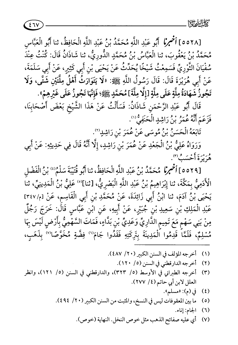 [5528] أخبرنا أَبُو عَبْدِ اللَّهِ مُحَمَّدُ بْنُ عَبْدِ اللَّهِ الْحَافِظُ، ثنا أَبُو الْعَبَّاسِ مُحَمَّدُ بْنُ يَعْقُوبَ، ثنا الْعَبَّاسُ بْنُ مُحَمَّدٍ الدُّورِيُّ، ثنا شَاذَانُ قَالَ: كُنْتُ عِنْدَ سُفْيَانَ الثَّوْرِيِّ فَسَمِعْتُ شَيْخًا يُحَدِّثُ عَنْ يَحْيَى بْنِ أَبِي كَثِيرٍ، عَنْ أَبِي سَلَمَةَ، عَنْ أَبِي هُرَيْرَةَ قَالَ: قَالَ رَسُولُ اللَّهِ - صلى الله عليه وسلم -: "لَا يَتَوَارَثُ أَهْلُ مِلَّتَيْنِ شَتَّى، وَلَا تَجُوزُ شَهَادَةُ مِلَّةٍ عَلَى مِلَّةٍ [إِلَّا مِلَّةَ] مُحَمَّدٍ - صلى الله عليه وسلم -؛ فَإِنَّهَا تَجُوزُ عَلَى غَيْرِهِمْ".