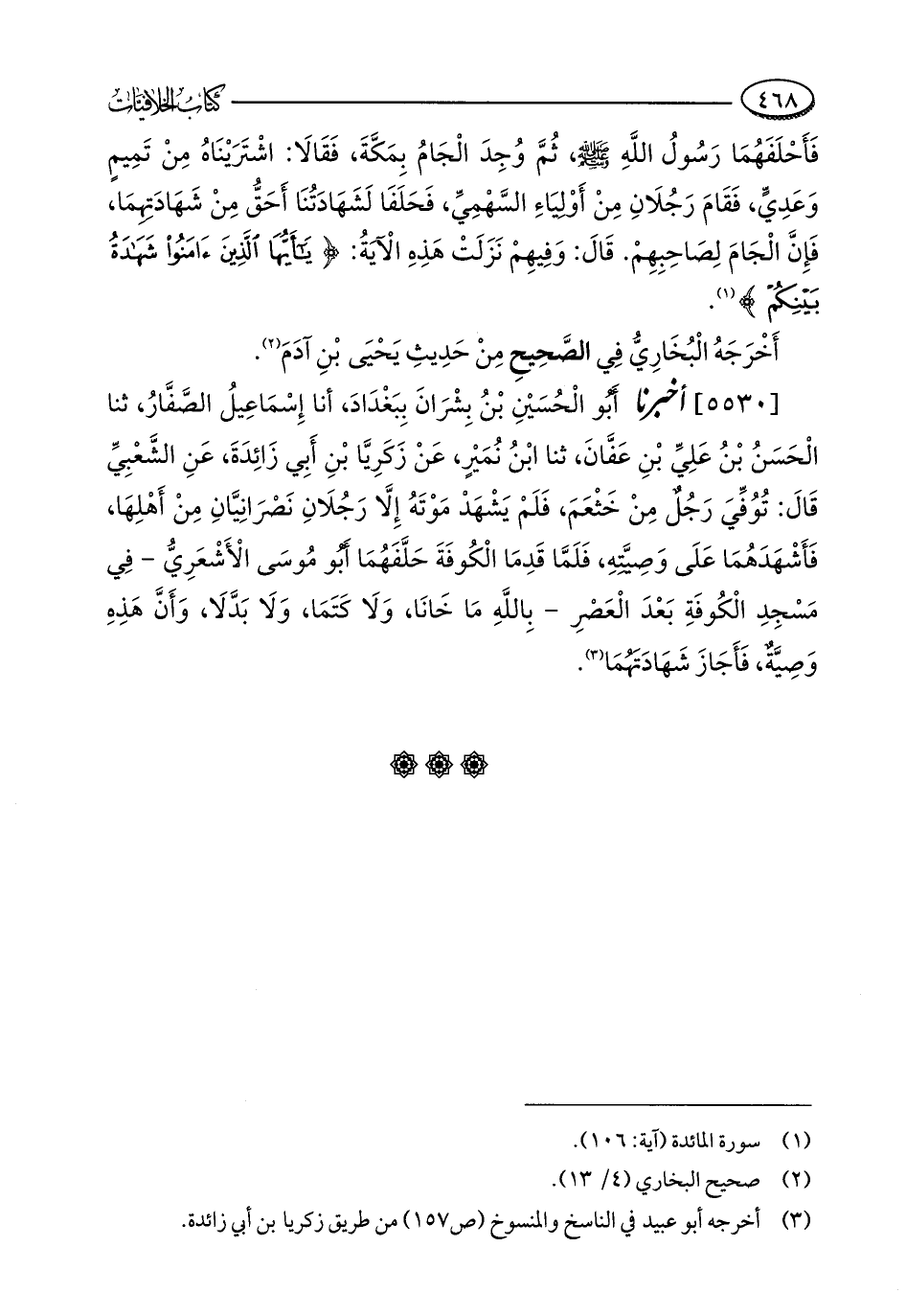 (¬3) أخرجه أبو عبيد في الناسخ والمنسوخ (ص 157) من طريق زكريا بن أبي زائدة.