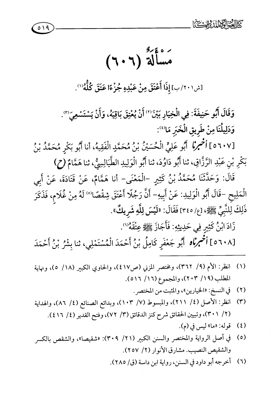 (¬3) انظر: الأصل (4/ 211)، والمبسوط (7/ 103)، وبدائع الصنائع (4/ 86)، والهداية (2/ 301)، وتبيين الحقائق شرح كنز الدقائق (3/ 72)، وفتح القدير (4/ 416).