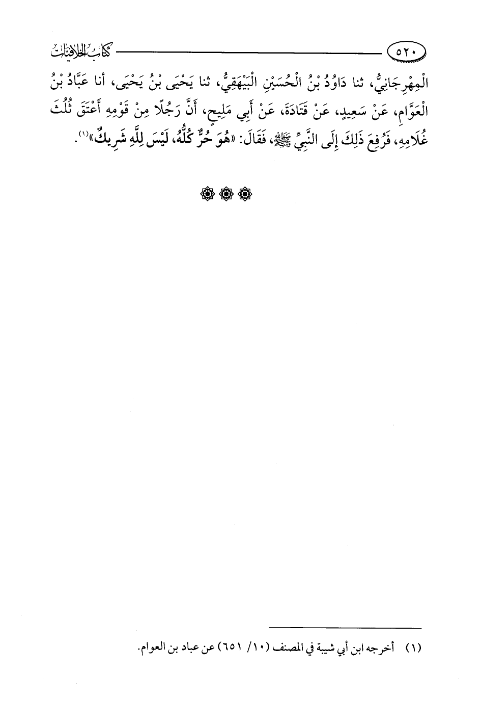 (¬1) أخرجه ابن أبي شيبة في المصنف (10/ 651) عن عباد بن العوام.