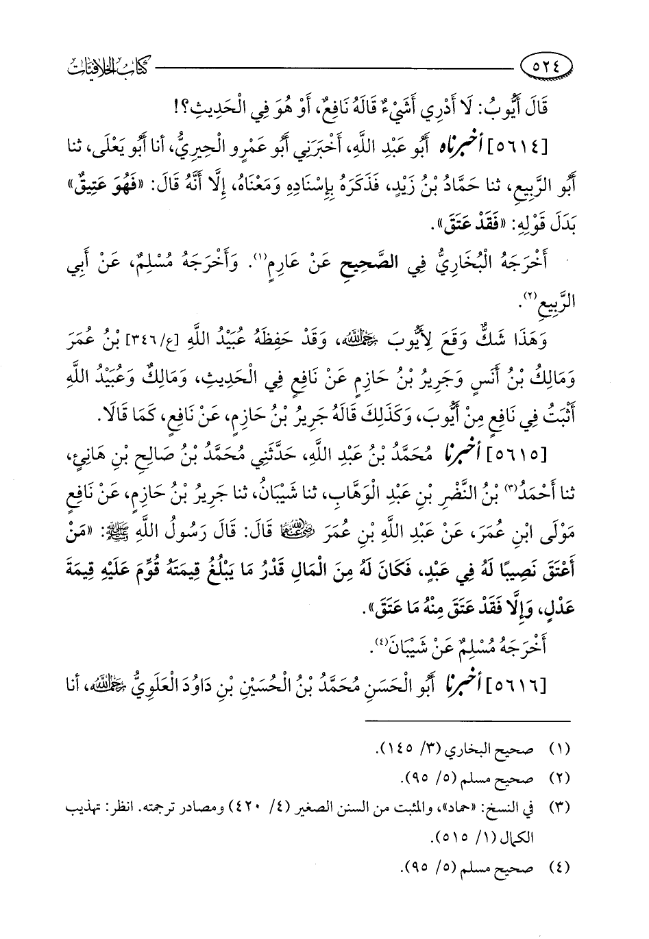 [5614] أخبرناه أَبُو عَبْدِ اللَّهِ، أَخْبَرَنِي أَبُو عَمْرٍو الْحِيرِيُّ، أنا أَبُو يَعْلَى، ثنا أَبُو الرَّبِيعِ، ثنا حَمَّادُ بْنُ زَيْدٍ، فَذَكَرَهُ بِإِسْنَادِهِ وَمَعْنَاهُ، إِلَّا أَنَّهُ قَالَ: "فَهُوَ عَتِيقٌ" بَدَلَ قَوْلِهِ: "فَقَدْ عَتَقَ".