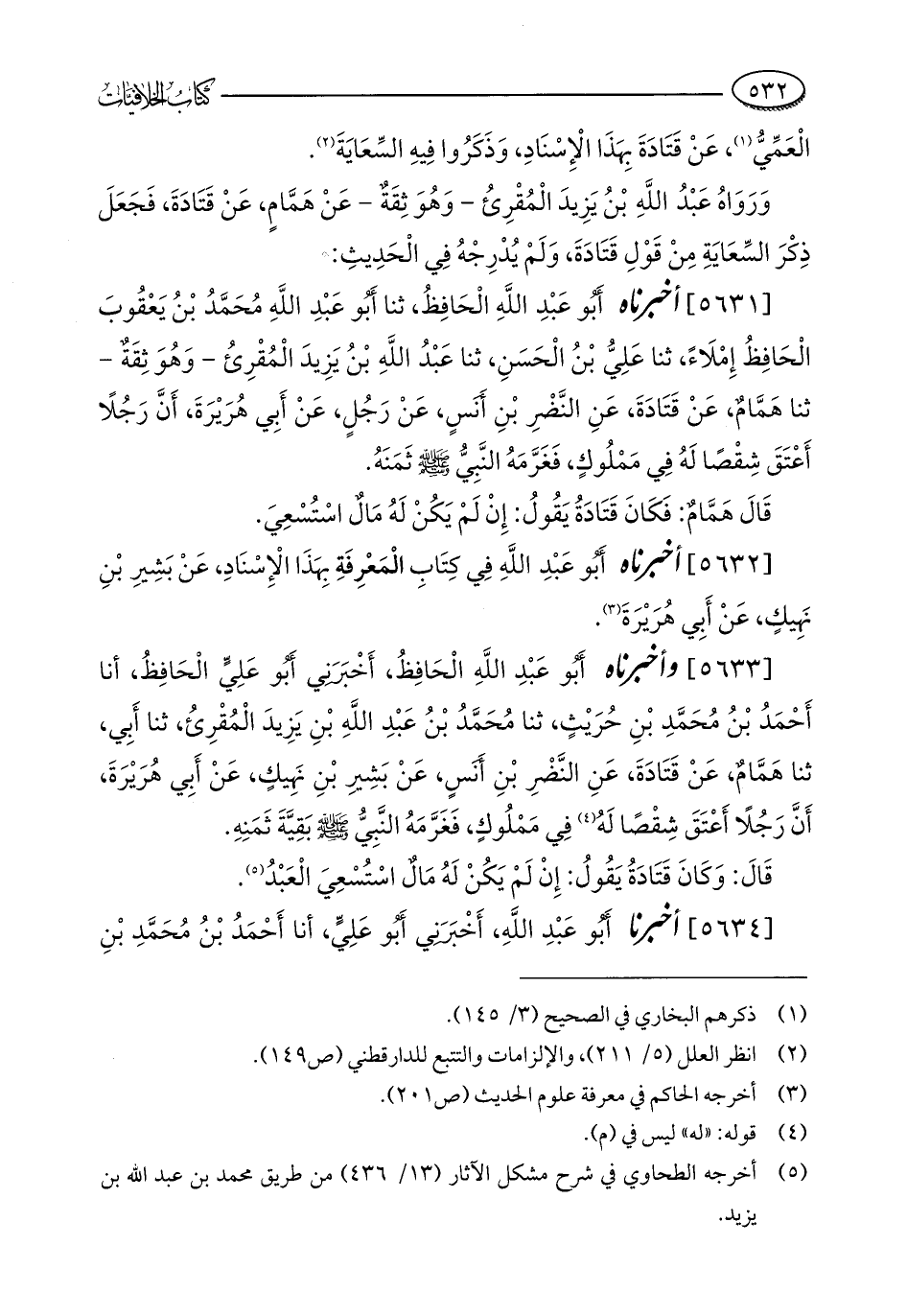 (¬2) انظر العلل (5/ 211)، والإلزامات والتتبع للدارقطني (ص 149).