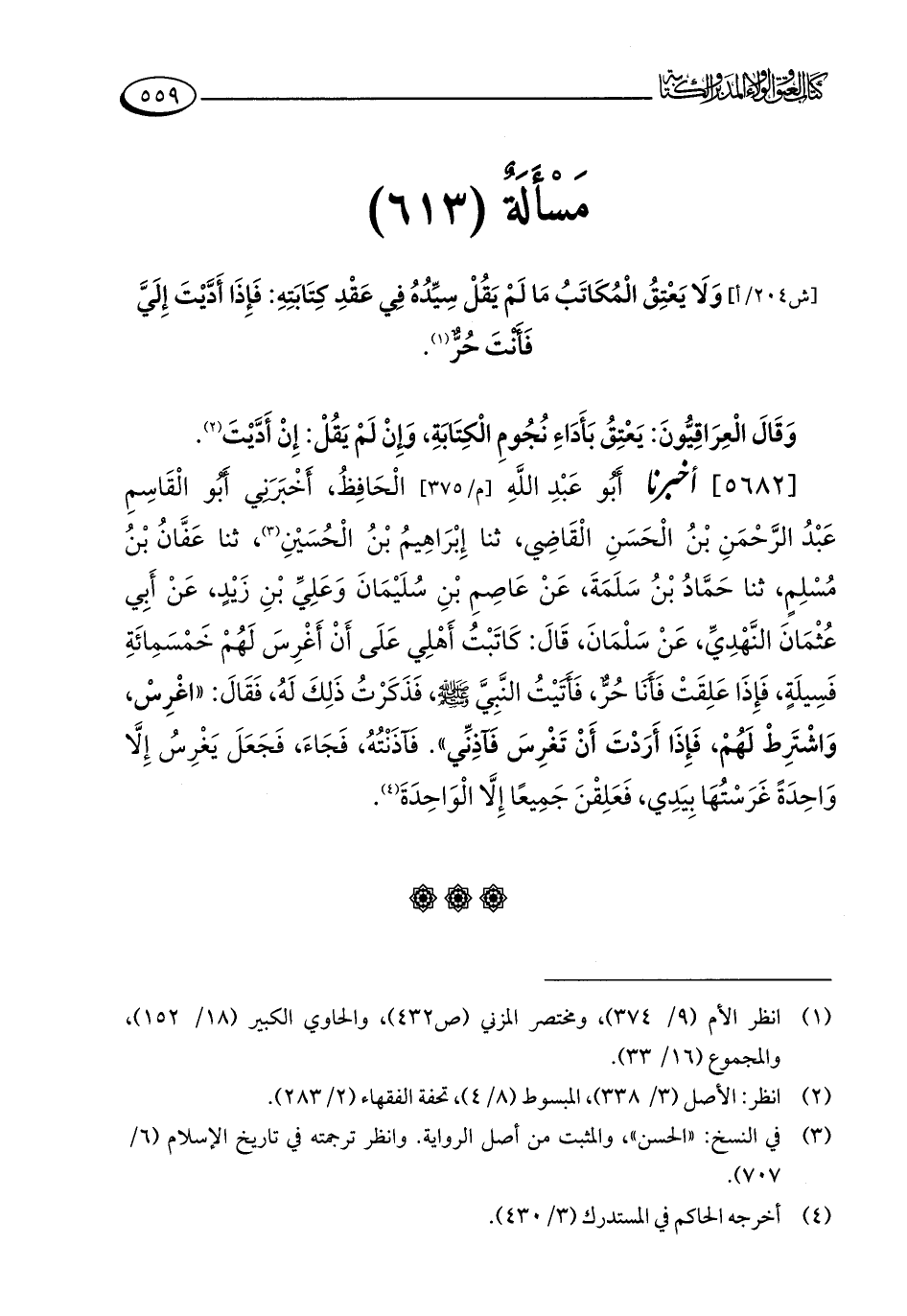 (¬1) انظر الأم (9/ 374)، ومختصر المزني (ص 432)، والحاوي الكبير (18/ 152)، والمجموع (16/ 33).