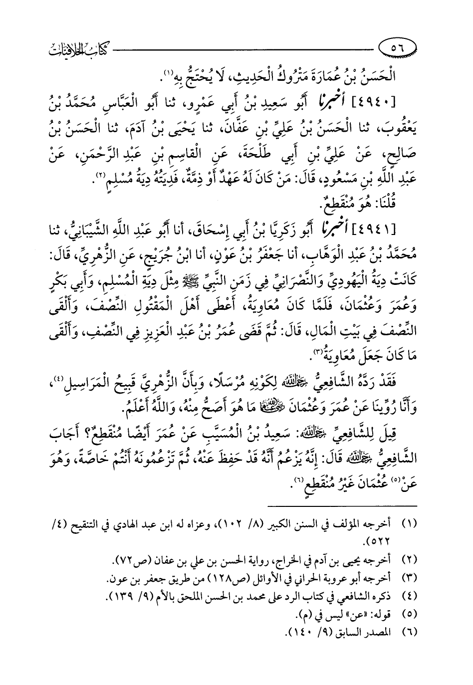 (¬4) ذكره الشافعي في كتاب الرد على محمد بن الحسن الملحق بالأم (9/ 139).