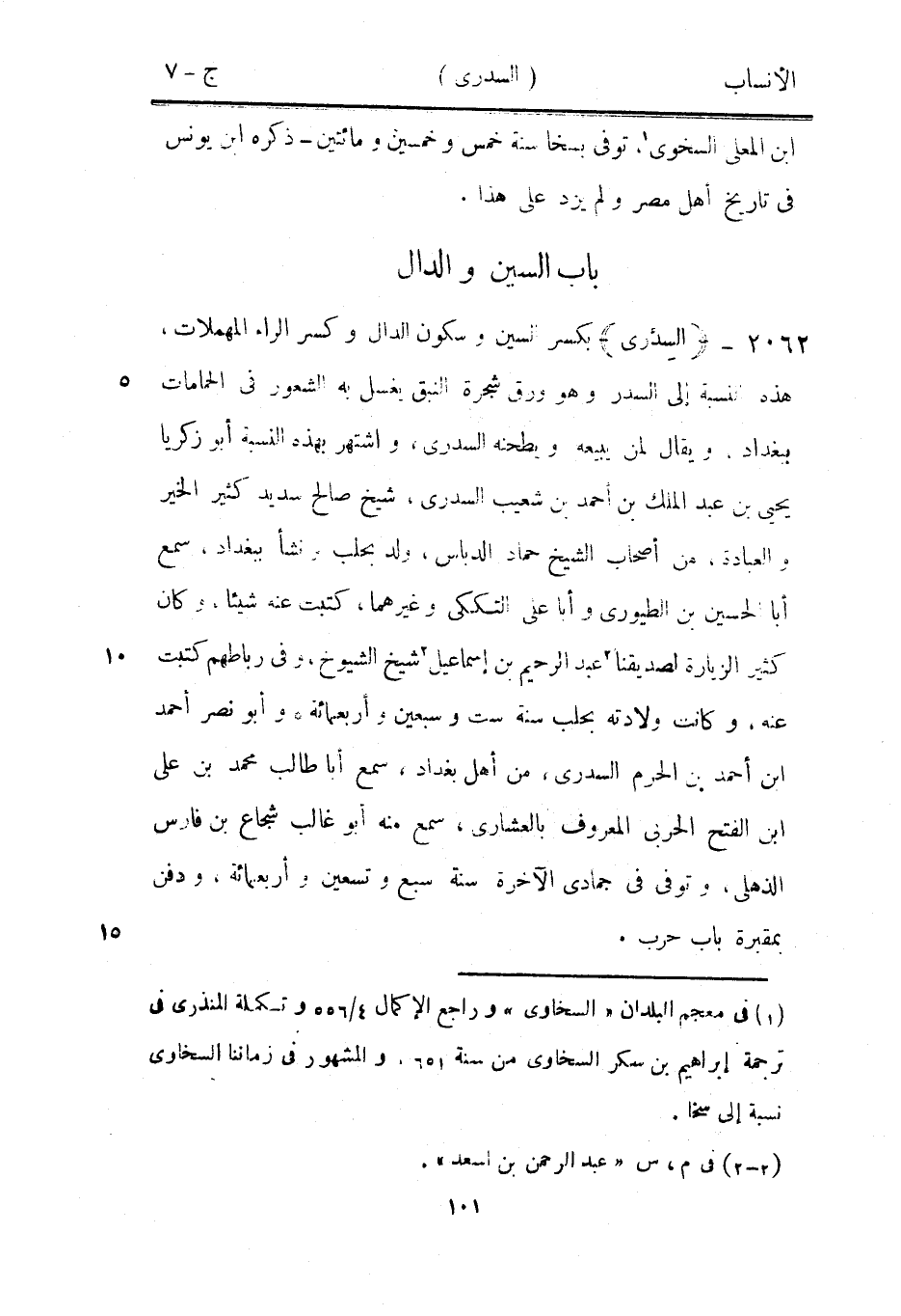 [1] في معجم البلدان «السخاوي» وراجع الإكمال 4/ 556 وتكملة المنذري في ترجمة إبراهيم بن سكر السخاوي من سنة 651، والمشهور في زماننا السخاوي نسبة إلى سخا.