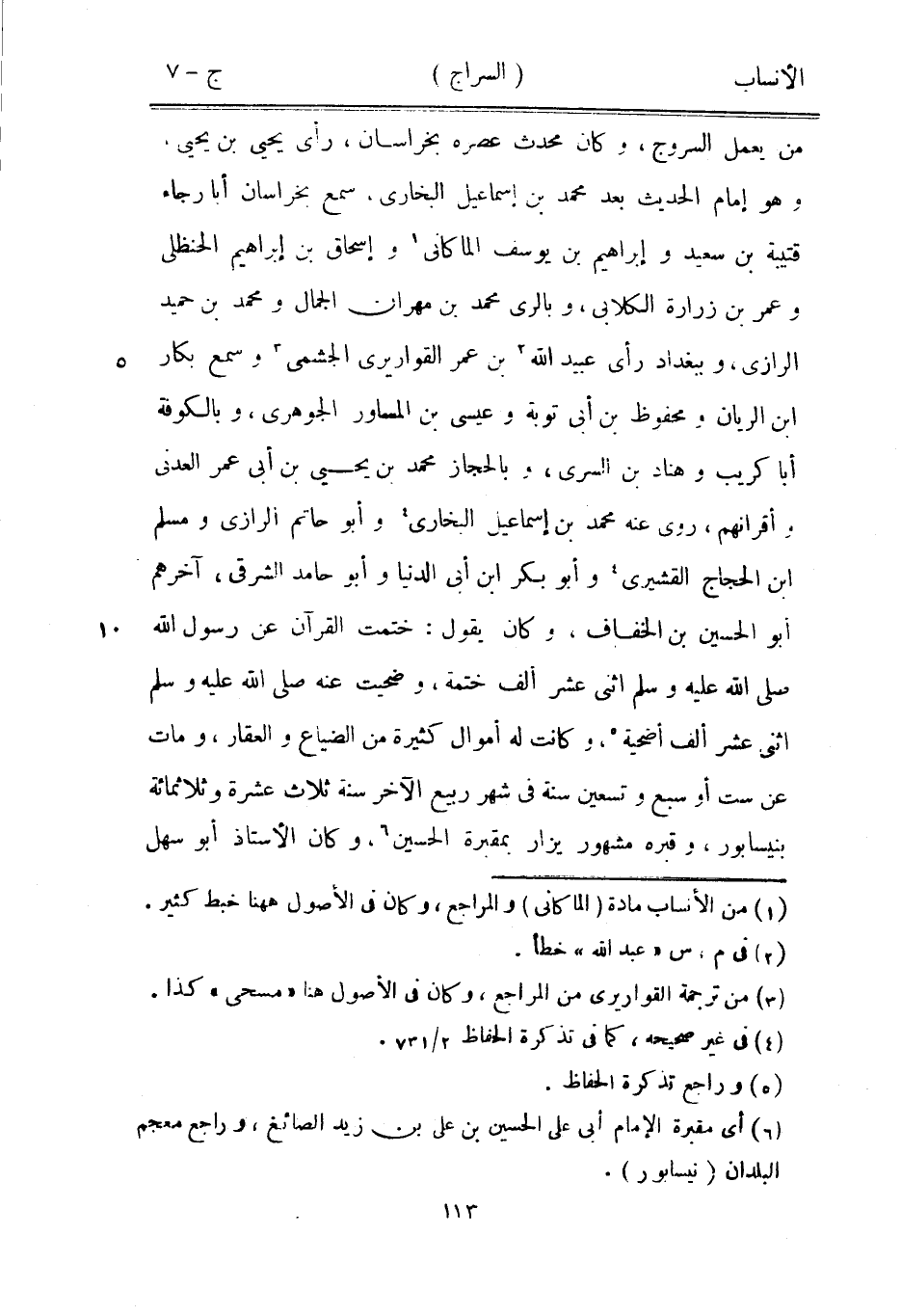 [6] أي مقبرة الإمام أبى على الحسين بن على بن زيد الصائغ، وراجع معجم البلدان نيسابور) .