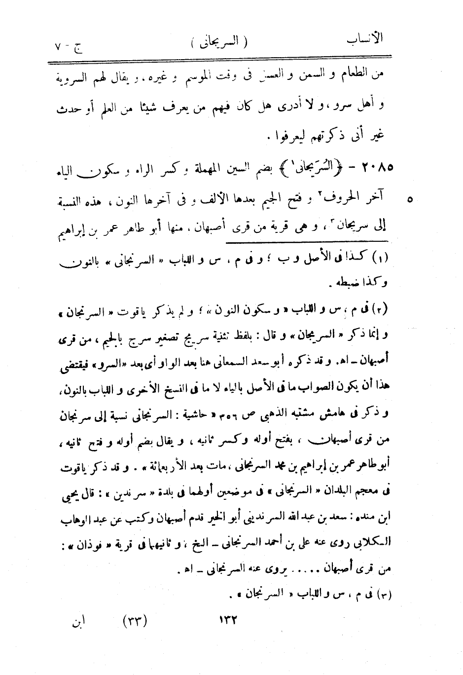 [1] كذا في الأصل وب، وفي م، س واللباب «السرنجانى» بالنون وكذا ضبطه.