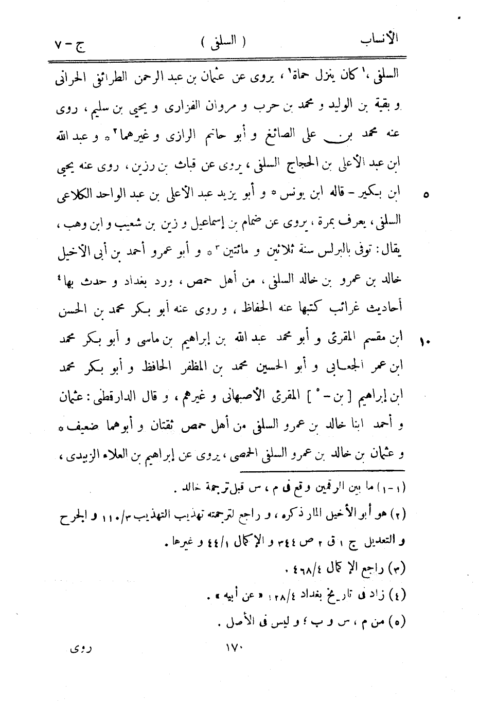 السلفي، [1] كان ينزل جماة [1] ، يروى عن عثمان بن عبد الرحمن الطرائفى الحراني وبقية بن الوليد ومحمد بن حرب ومروان الفزاري ويحيى بن سليم، روى عنه محمد بن على الصائغ وأبو حاتم الرازيّ وغيرهما [2] وعبد الله ابن عبد الأعلى بن الحجاج السلفي، يروى عن قباث بن رزين، روى عنه يحيى ابن بكير- قاله ابن يونس وأبو يزيد عبد الأعلى بن عبد الواحد الكلاعي السلفي، يعرف بمرة، يروى عن ضمام بن إسماعيل وزين بن شعيب وابن وهب، يقال: توفى بالبرلس سنة ثلاثين ومائتين [3] وأبو عمرو أحمد بن أبى الأخيل خالد بن عمرو بن خالد السلفي، من أهل حمص، ورد بغداد وحدث بها [4] أحاديث غرائب كتبها عنه الحفاظ، وروى عنه أبو بكر محمد بن الحسن ابن مقسم المقرئ وأبو محمد عبد الله بن إبراهيم بن ماسى وأبو بكر محمد ابن عمر الجعابيّ وأبو الحسين محمد بن المظفر الحافظ وأبو بكر محمد ابن إبراهيم [بن-[5]] المقرئ الأصبهاني وغيرهم، وقال الدار قطنى: عثمان وأحمد ابنا خالد بن عمرو السلفي من أهل حمص ثقتان وأبوهما ضعيف وعثمان بن خالد بن عمرو السلفي الحمصي، يروى عن إبراهيم بن العلاء الزبيدي،