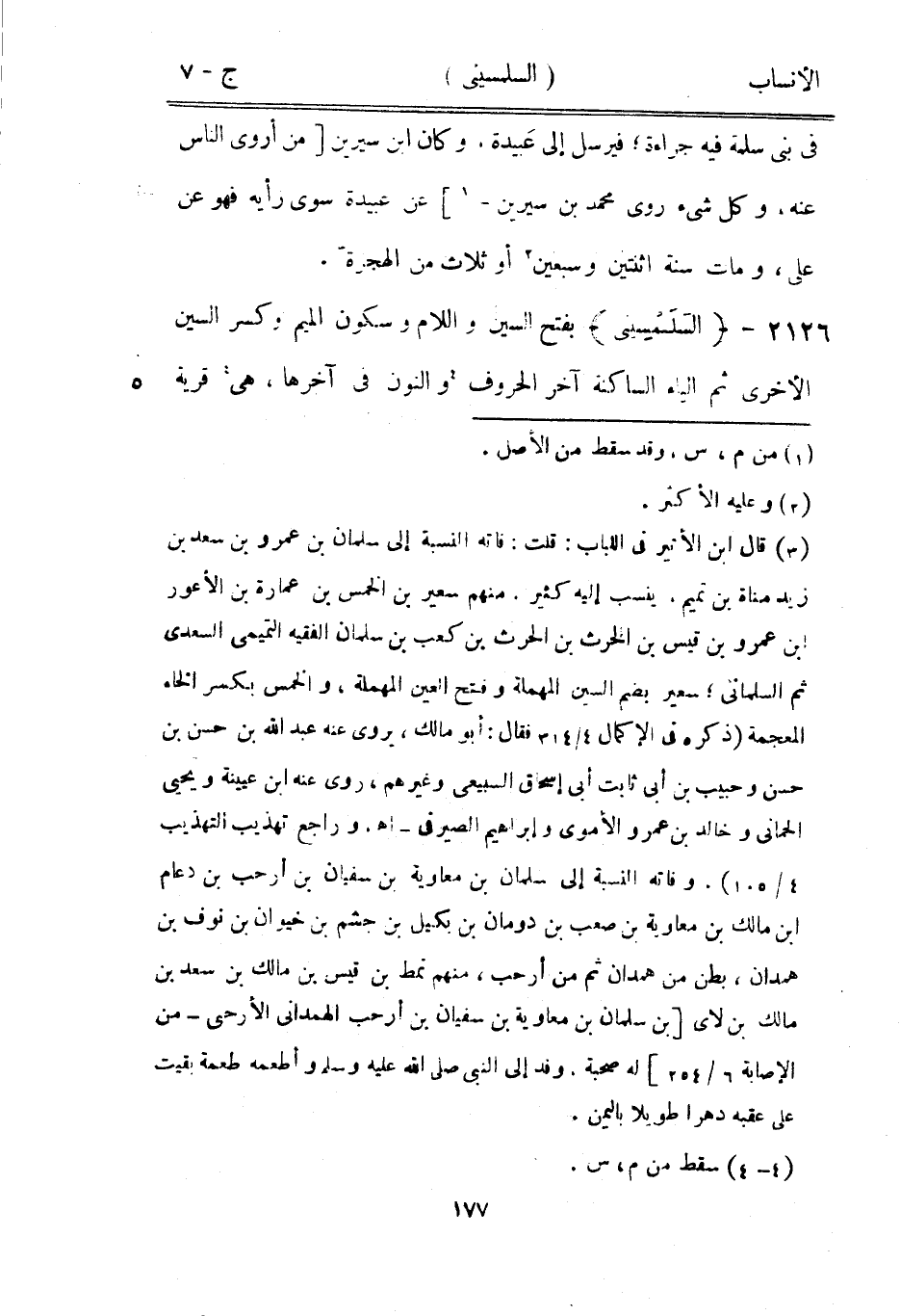 [3] قال ابن الأثير في اللباب: قلت: فاته النسبة إلى سلمان بن عمرو بن سعد بن زيد مناة بن تميم، ينسب إليه كثير، منهم سعير بن الخمس بن عمارة بن الأعور ابن عمرو بن قيس بن الحرث بن الحرث بن كعب بن سلمان الفقيه التميمي السعدي ثم السلماني، سعير بضم السين المهملة وفتح العين المهملة، والخمس بكسر الخاء المعجمة (ذكره في الإكمال 4/ 314 فقال: أبو مالك، يروى عنه عبد الله بن حسن بن حسن وحبيب بن أبى ثابت أبى إسحاق السبيعي وغيرهم، روى عنه ابن عيينة ويحيى الحماني وخالد بن عمرو الأموي وإبراهيم الصيرفي- أهـ، وراجع تهذيب التهذيب 4/ 105) . وفاته النسبة إلى سلمان بن معاوية بن سفيان بن أرحب بن دعام ابن مالك بن معاوية بن صعب بن دومان بن بكيل بن جشم بن خيوان بن نوف بن همدان، بطن من همدان ثم من أرحب، منهم نمط بن قيس بن مالك بن سعد بن مالك بن لاى [بن سلمان بن معاوية بن سفيان بن أرحب الهمدانيّ الأرحبي- من الإصابة 6/ 254] له صحبة. وفد إلى النبي صلى الله عليه وسلم وأطعمه طعمة بقيت على عقبه دهرا طويلا باليمن.
