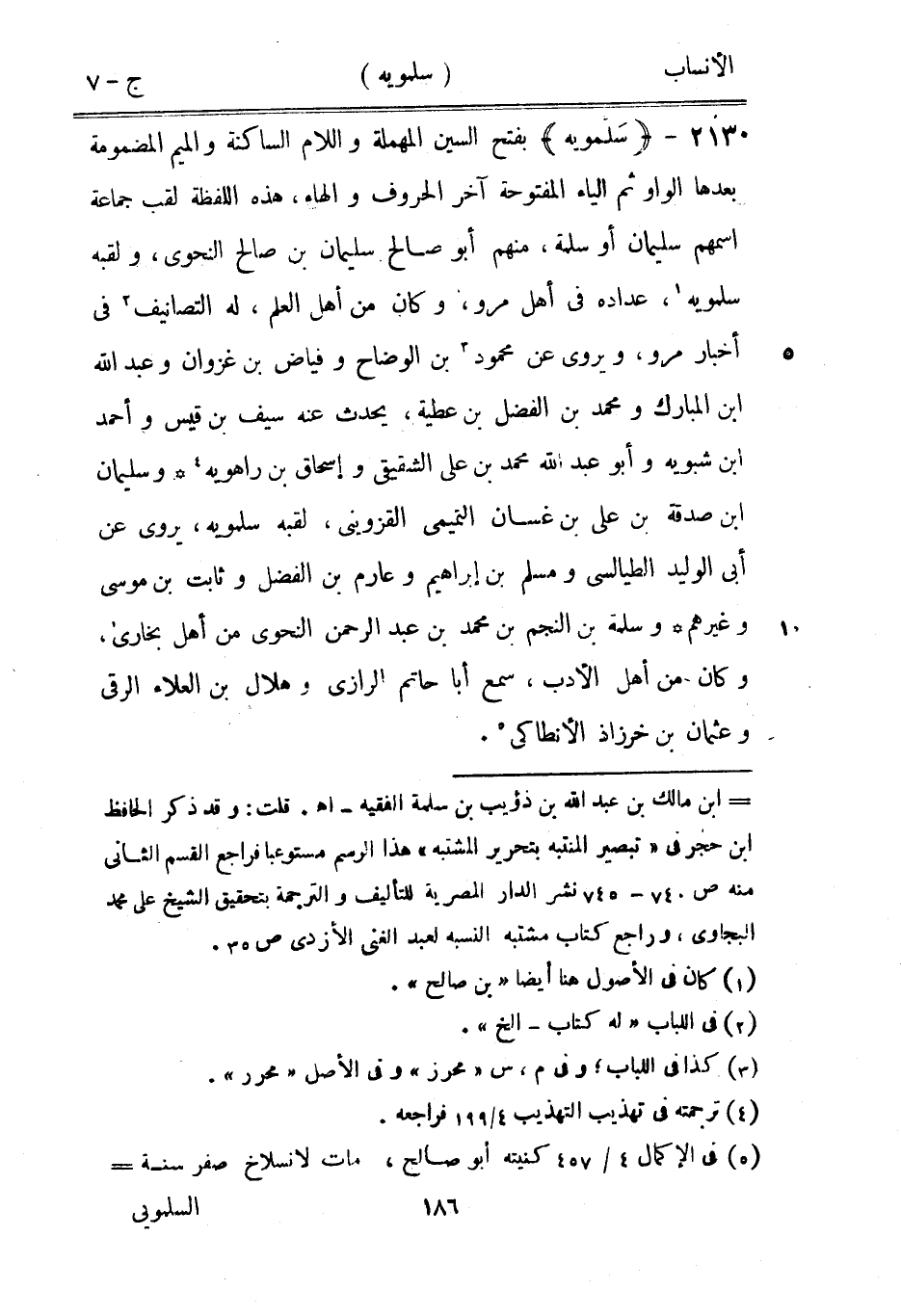 [ () ] ابن مالك بن عبد الله بن ذؤيب بن سلمة الفقيه- أهـ. قلت: وقد ذكر الحافظ ابن حجر في «تبصير المنتبه بتحرير المشتبه» هذا الرسم مستوعبا فراجع القسم الثاني منه ص 740- 745 نشر الدار المصرية للتأليف والترجمة بتحقيق الشيخ على محمد البجاوي، وراجع كتاب مشتبه النسبة لعبد الغنى الأزدي ص 35.