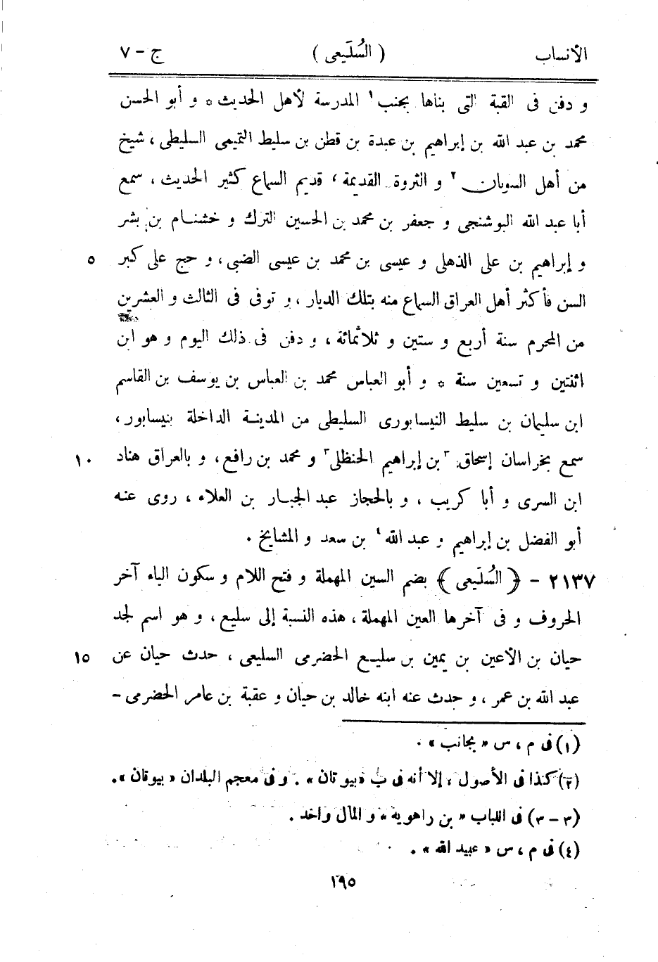 بضم السين المهملة وفتح اللام وسكون الياء آخر الحروف وفي آخرها العين المهملة، هذه النسبة إلى سليع، وهو اسم لجد حيان بن الأعين بن يمين بن سليع الحضرميّ السليعى، حدث حيان عن عبد الله بن عمر، وحدث عنه ابنه خالد بن حيان وعقبة بن عامر الحضرميّ-