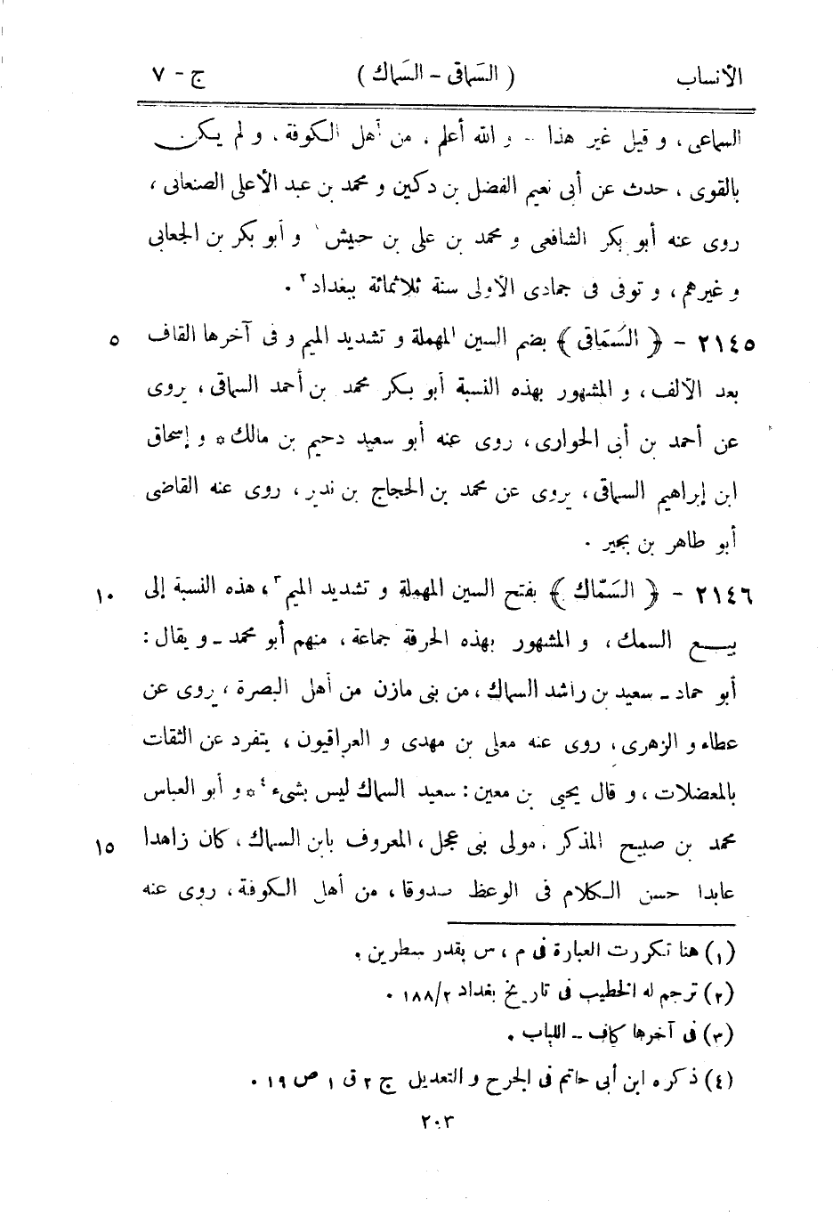 أبو حماد- سعيد بن راشد السماك، من بنى مازن من أهل البصرة، يروى عن عطاء والزهري، روى عنه معلى بن مهدي والعراقيون، يتفرد عن الثقات بالمعضلات، وقال يحيى بن معين: سعيد السماك ليس بشيء [4] وأبو العباس محمد بن صبيح المذكر، مولى بنى عجل، المعروف بابن السماك، كان زاهدا عابدا حسن الكلام في الوعظ صدوقا، من أهل الكوفة، روى عنه