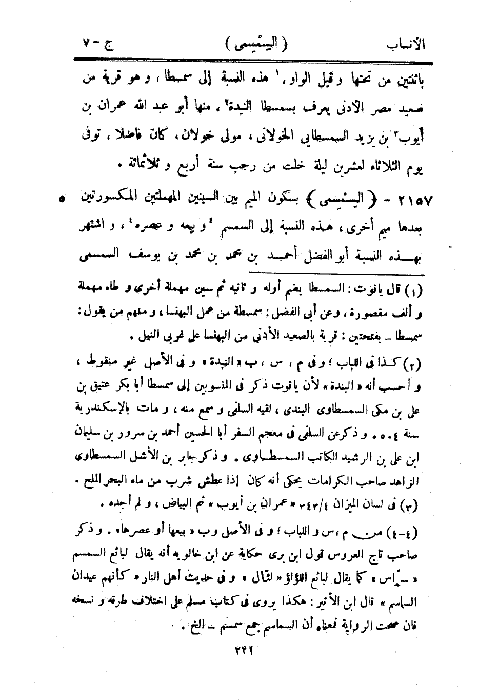 [4- 4] من م، س واللباب، وفي الأصل وب «بيعها أو عصرها» . وذكر صاحب تاج العروس قول ابن بري حكاية عن ابن خالويه أنه يقال لبائع السمسم «سمّاس» كما يقال لبائع اللؤلؤ «لآّل» وفي حديث أهل النار «كأنهم عيدان السماسم» قال ابن الأثير: هكذا يروى في كتاب مسلم على اختلاف طرقه ونسخه فان صحت الرواية فمعناه أن السماسم جمع سمسم- إلخ.