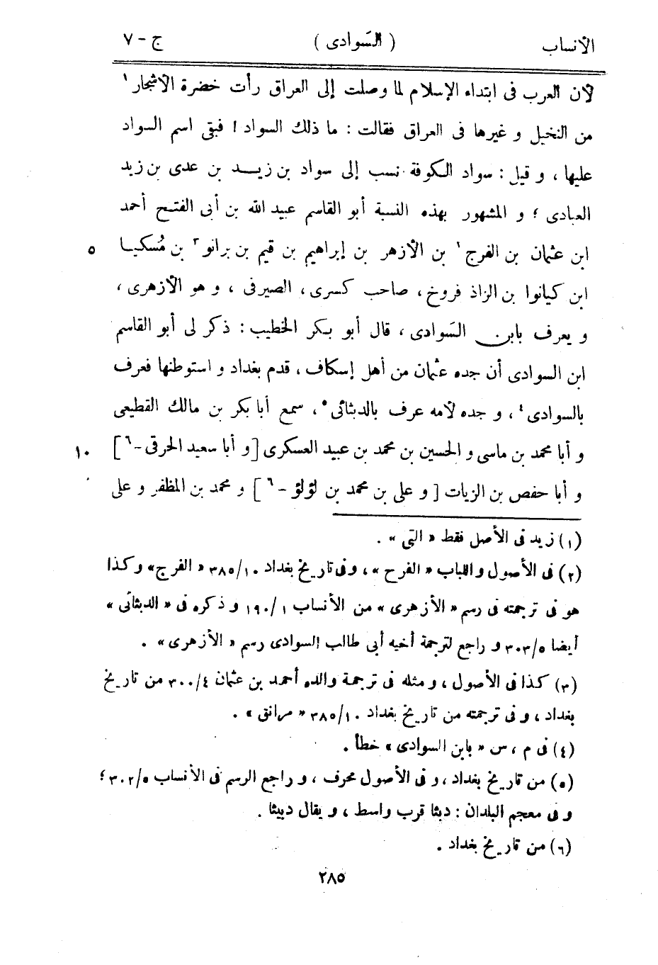 [2] في الأصول واللباب «الفرح» ، وفي تاريخ بغداد 10/ 385 «الفرج» وكذا هو في ترجمته في رسم «الأزهري» من الأنساب 1/ 190 وذكره في «الدبثائى» أيضا 5/ 303 وراجع لترجمة أخيه أبى طالب السوادى رسم «الأزهري» .