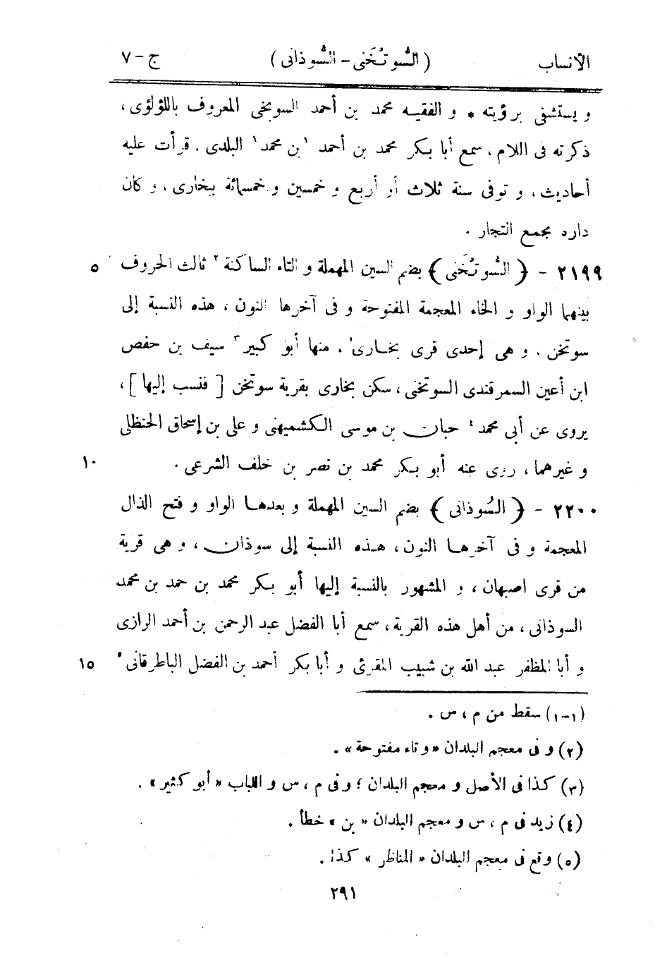 بضم السين المهملة وبعدها الواو وفتح الذال المعجمة وفي آخرها النون، هذه النسبة إلى سوذان، وهي قرية من قرى أصبهان، والمشهور بالنسبة إليها أبو بكر محمد بن حمد بن محمد السوذانى، من أهل هذه القرية، سمع أبا الفضل عبد الرحمن بن أحمد الرازيّ وأبا المظفر عبد الله بن شبيب المقرئ وأبا بكر أحمد بن الفضل الباطرقاني [5]