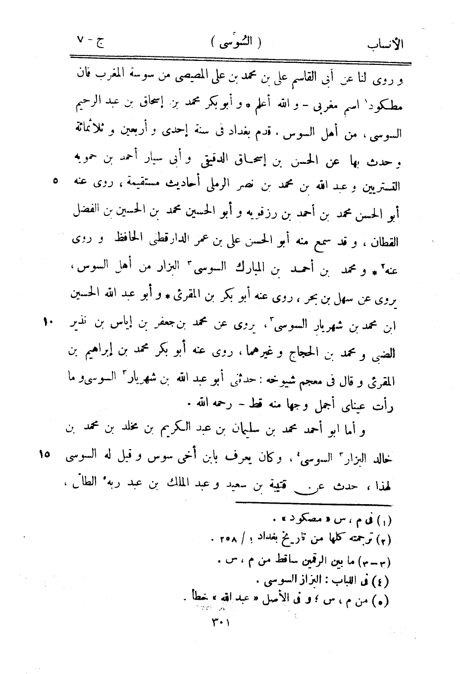 وأما أبو أحمد محمد بن سليمان بن عبد الكريم بن مخلد بن محمد بن خالد البزار [3] السوسي [4] ، وكان يعرف بابن أخى سوس وقيل له السوسي لهذا، حدث عن قتيبة بن سعيد وعبد الملك بن عبد ربه [5] الطلل،