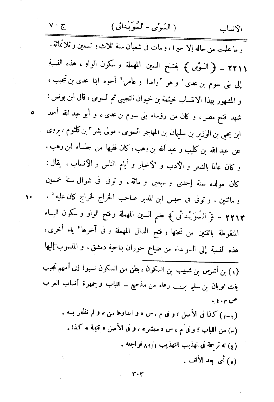 بضم السين المهملة وفتح الواو وسكون الياء المنقوطة باثنتين من تحتها وفتح الدال المهملة وفي آخرها [5] ياء أخرى، هذه النسبة إلى السويداء من ضياع حوران بناحية دمشق، والمنسوب إليها