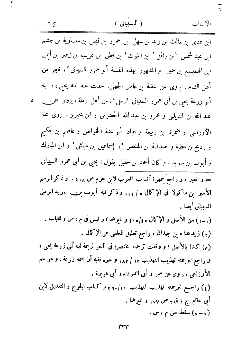 [ () ] والمحبر، وراجع جمهرة أنساب العرب لابن حزم ص 408. وذكر الرسم الأمير ابن ماكولا في الإكمال 5/ 111 وذكر فيه أيوب بن سويد الرمليّ السيبانى أيضا.