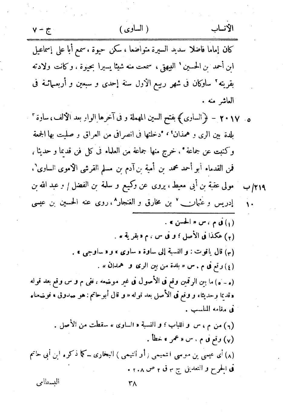[6] من م، س واللباب، والنسبة «الساوي» سقطت من الأصل.