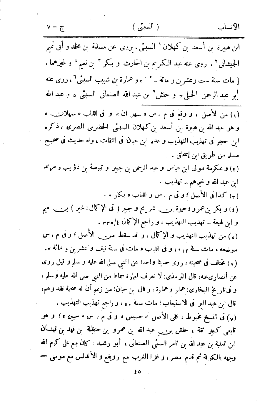 [1] من الأصل، ووقع في م، س «سهل ان» وفي اللباب «سهلان» وهو عبد الله بن هبيرة بن أسعد بن كهلان السبئي الحضرميّ المصري، ذكره ابن حجر في تهذيب التهذيب وعده ابن حبان في الثقات، وله حديث في صحيح مسلم من طريق ابن إسحاق.