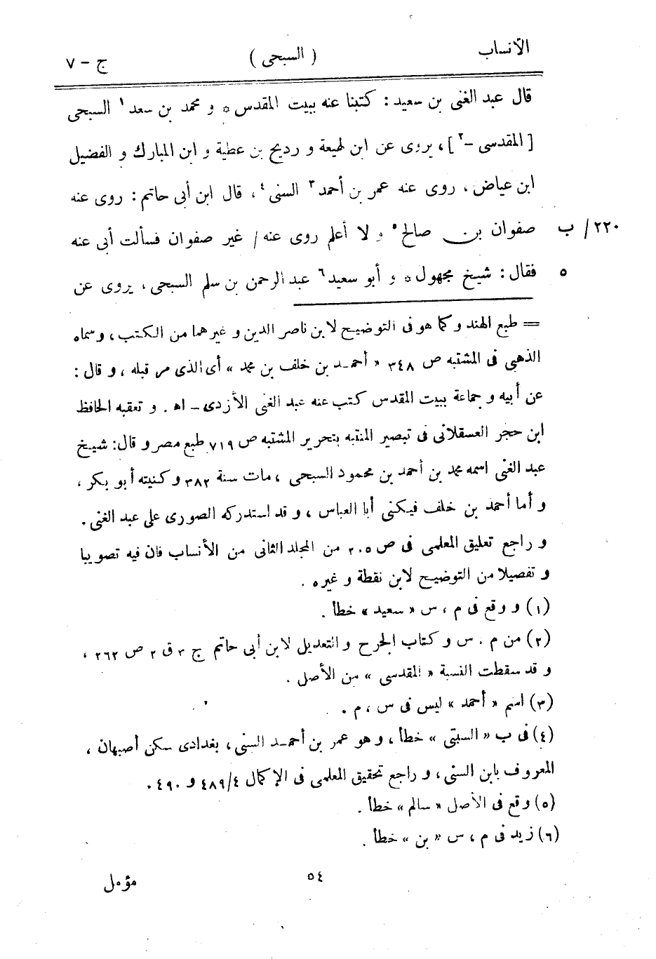 وراجع تعليق المعلمي في ص 305 من المجلد الثاني من الأنساب فان فيه تصويبا وتفصيلا من التوضيح لابن نقطة وغيره.