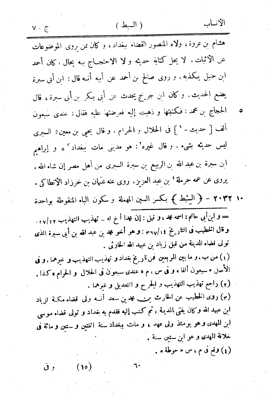 [1] من ب، وما بين المربعين فمن تاريخ بغداد وتهذيب التهذيب وغيرهما، وفي الأصل «سبعون ألفا» وفي س، م «عندي سبعون في الحلال والحرام» كذا.