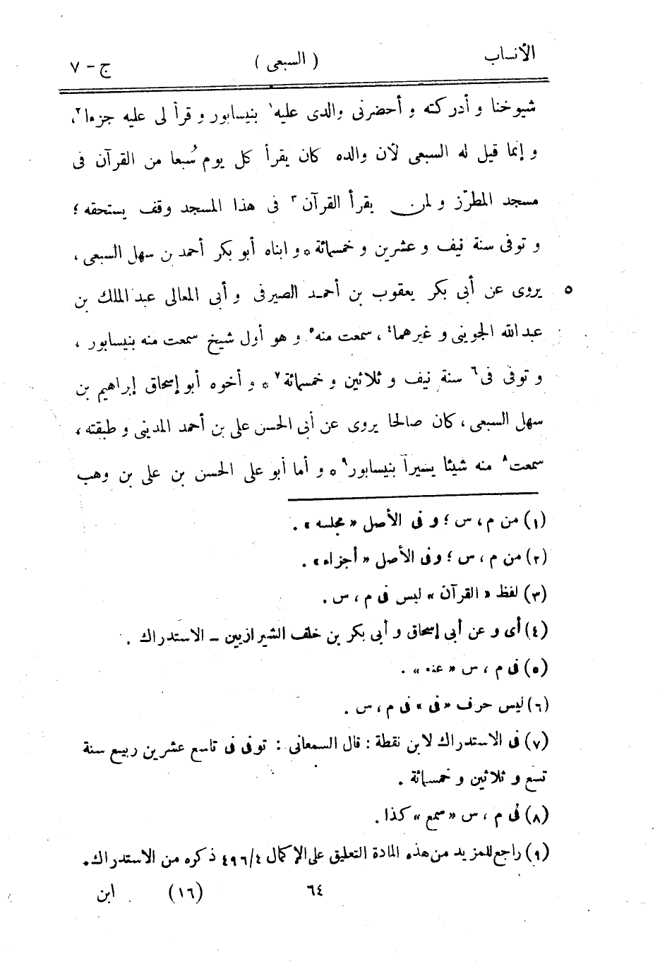 [7] في الاستدراك لابن نقطة: قال السمعاني: توفى في تاسع عشرين ربيع سنة تسع وثلاثين وخمسمائة.