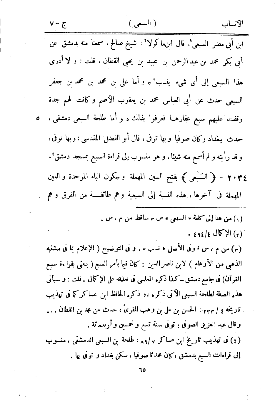 [4] في تهذيب تاريخ ابن عساكر 7/ 89: طلحة بن السبعي الدمشقيّ، منسوب إلى قراءات السبع بدمشق، كان محدثا صوفيا، سكن بغداد وتوفى بها.