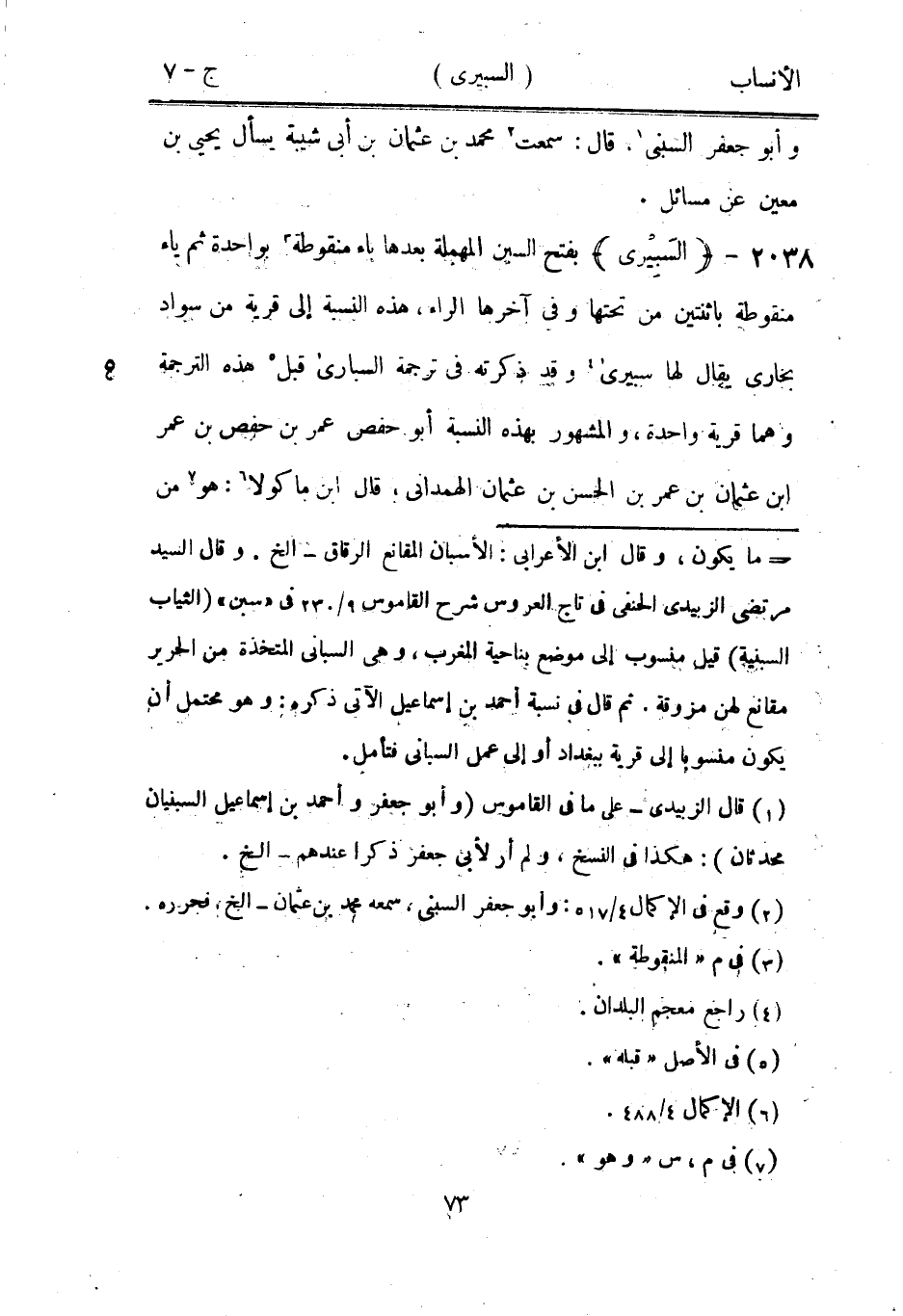 [1] قال الزبيدي- على ما في القاموس (وأبو جعفر وأحمد بن إسماعيل السبنيان محدثان) : هكذا في النسخ، ولم أر لأبى جعفر ذكرا عندهم- إلخ.