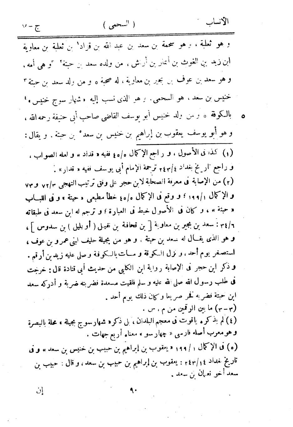 [5] في الإكمال 1/ 199 «يعقوب بن إبراهيم بن حبيب بن خنيس بن سعد» وفي تاريخ بغداد 14/ 243: يعقوب بن إبراهيم بن حبيب بن سعد، وقال: حبيب بن سعد أخو نعمان بن سعد.