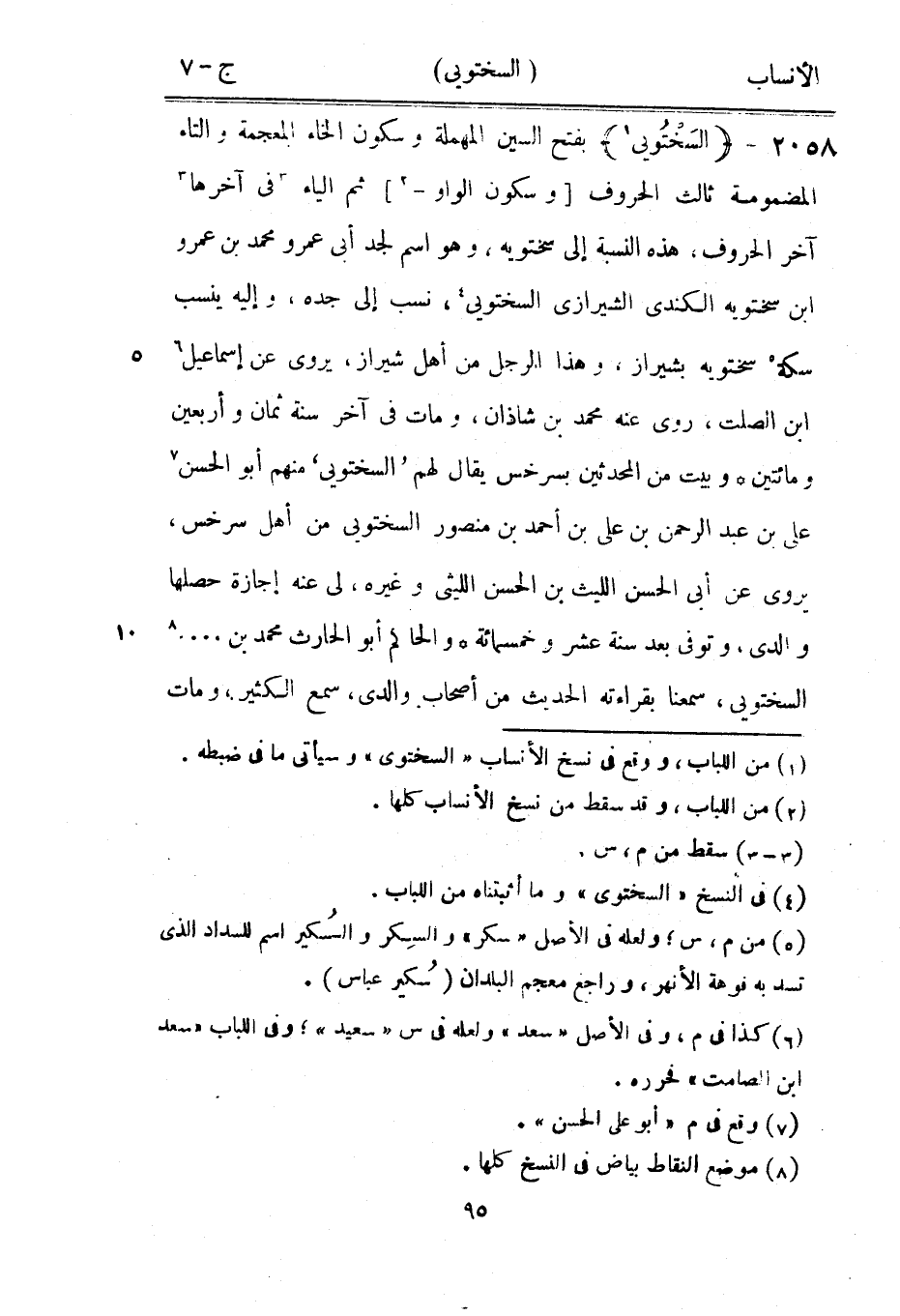 [1] من اللباب، ووقع في نسخ الأنساب «السختوى» وسيأتي ما في ضبطه.