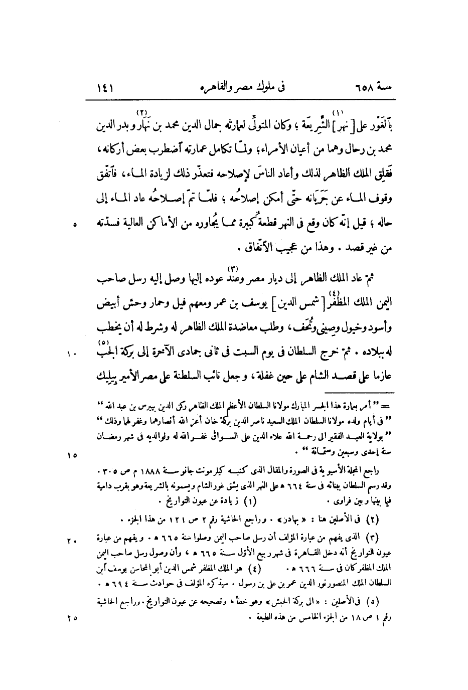 ثمّ عاد الملك الظاهر إلى ديار مصر وعند «3» عوده إليها وصل إليه رسل صاحب اليمن الملك المظفر «4» [شمس الدين] يوسف بن عمر ومعهم فيل وحمار وحش أبيض وأسود وخيول وصينى وتحف، وطلب معاضدة الملك الظاهر له وشرط له أن يخطب له ببلاده. ثمّ خرج السلطان فى يوم السبت فى ثانى جمادى الآخرة إلى بركة الجب «5» عازما على قصد الشام على حين غفلة، وجعل نائب السلطنة على مصر الأمير بيليك