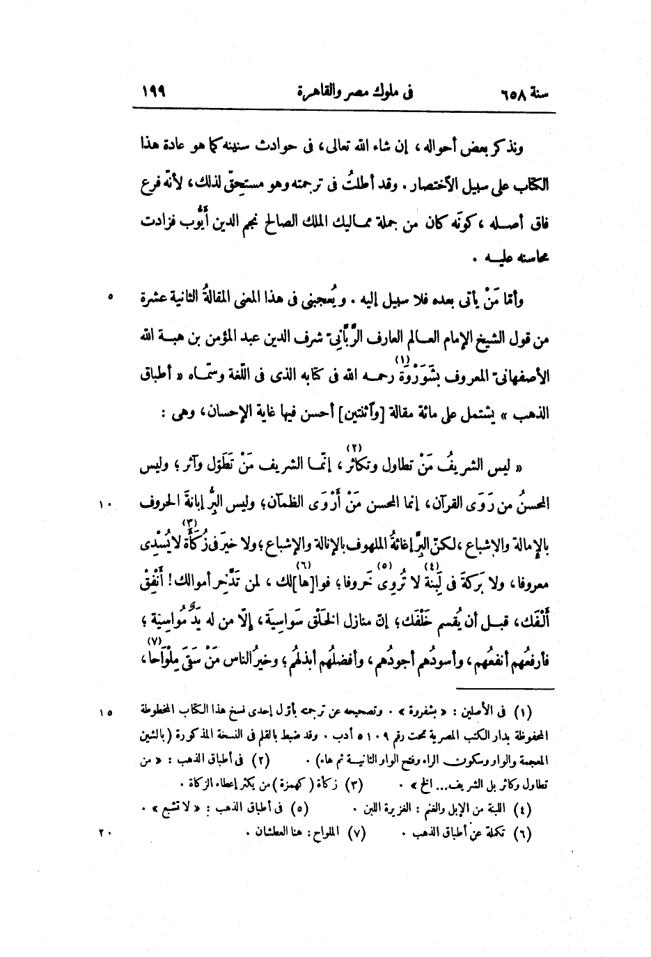 ونذكر بعض أحواله، إن شاء الله تعالى، فى حوادث سنينه كما هو عادة هذا الكتاب على سبيل الاختصار. وقد أطلت فى ترجمته وهو مستحقّ لذلك، لأنّه فرع فاق أصله، كونه كان من جملة مماليك الملك الصالح نجم الدين أيّوب فزادت محاسنه عليه.