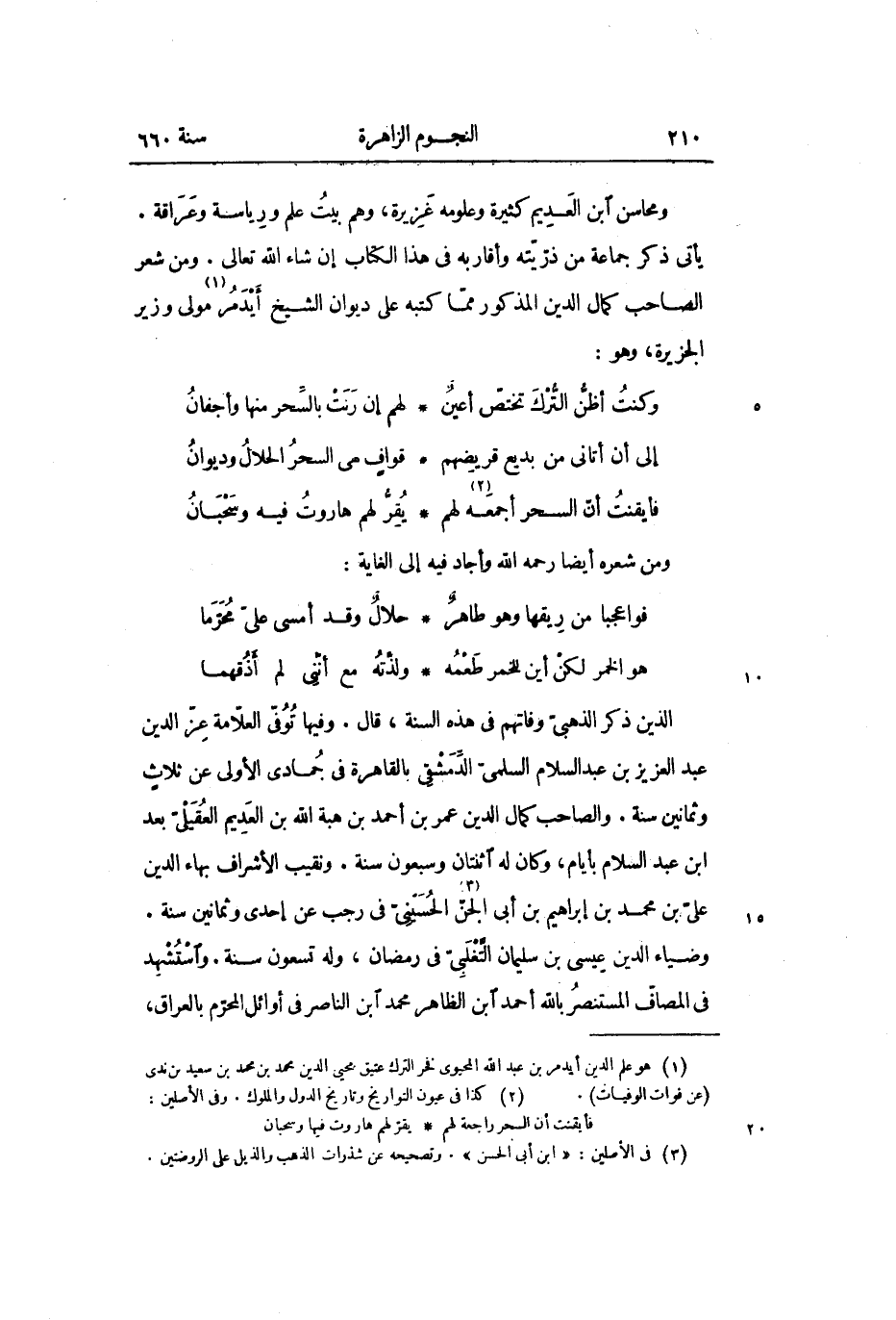 الذين ذكر الذهبىّ وفاتهم فى هذه السنة، قال. وفيها توفّى العلّامة عزّ الدين عبد العزيز بن عبد السلام السلمىّ الدّمشقى بالقاهرة فى جمادى الأولى عن ثلاث وثمانين سنة. والصاحب كمال الدين عمر بن أحمد بن هبة الله بن العديم العقيلىّ بعد ابن عبد السلام بأيام، وكان له اثنتان وسبعون سنة. ونقيب الأشراف بهاء الدين علىّ بن محمد بن إبراهيم بن أبى الجنّ «3» الحسينىّ فى رجب عن إحدى وثمانين سنة.