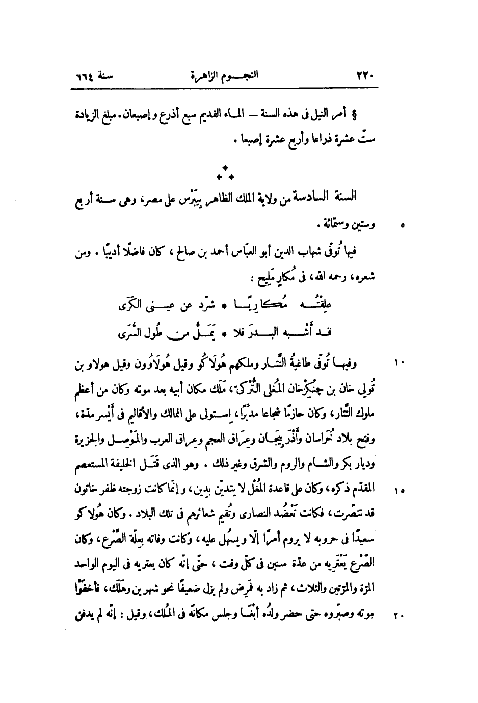 السنة السادسة من ولاية الملك الظاهر بيبرس على مصر، وهى سنة أربع وستين وستمائة.