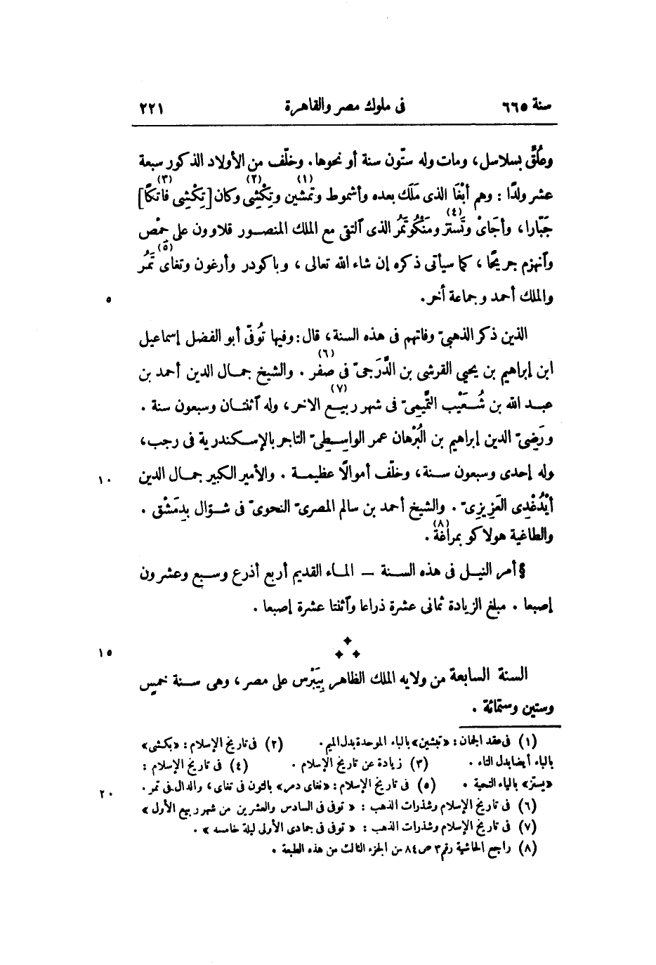السنة السابعة من ولايه الملك الظاهر بيبرس على مصر، وهى سنة خمس وستين وستمائة.