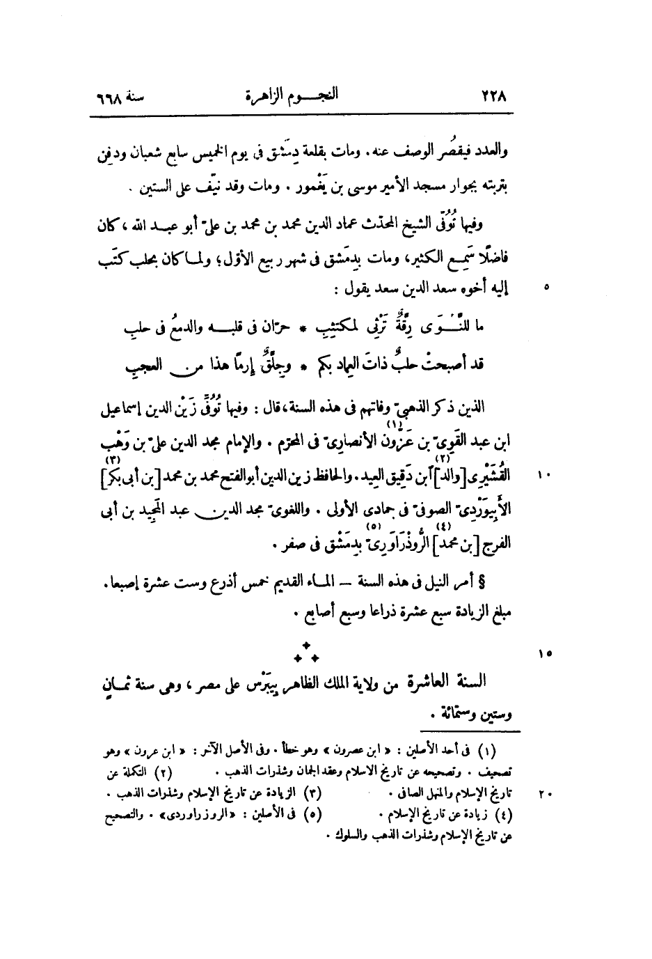 السنة العاشرة من ولاية الملك الظاهر بيبرس على مصر، وهى سنة ثمان وستين وستمائة.
