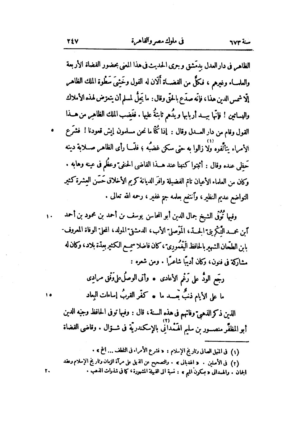 وفيها توفّى الشيخ جمال الدين أبو المحاسن يوسف بن أحمد بن محمود بن أحمد ابن محمد التّكريتىّ الجدّ، الموصلىّ الأب، الدمشقىّ المولد، المحلىّ الوفاة المعروف- بابن الطحّان الشهير بالحافظ اليغمورىّ، كان فاضلا سمع الكثير بعدّة بلاد، وكان له مشاركة فى فنون، وكان أديبا شاعرا. ومن شعره: