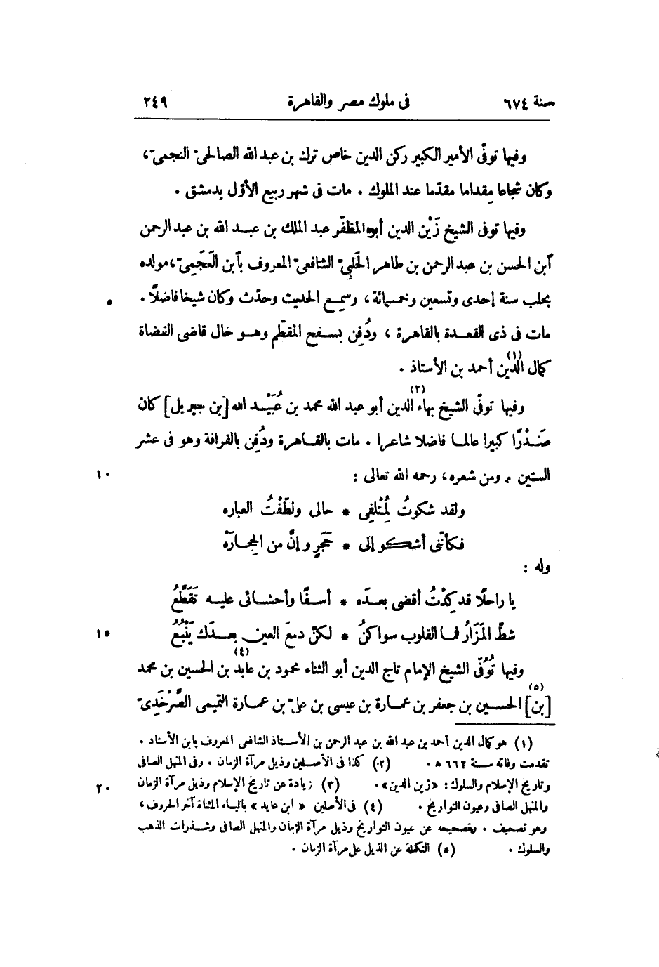 وفيها توفّى الشيخ بهاء «2» الدين أبو عبد الله محمد بن عبيد الله [بن جبريل] كان صدرا كبيرا عالما فاضلا شاعرا. مات بالقاهرة ودفن بالفرافة وهو فى عشر الستين، ومن شعره، رحمه الله تعالى: «3»